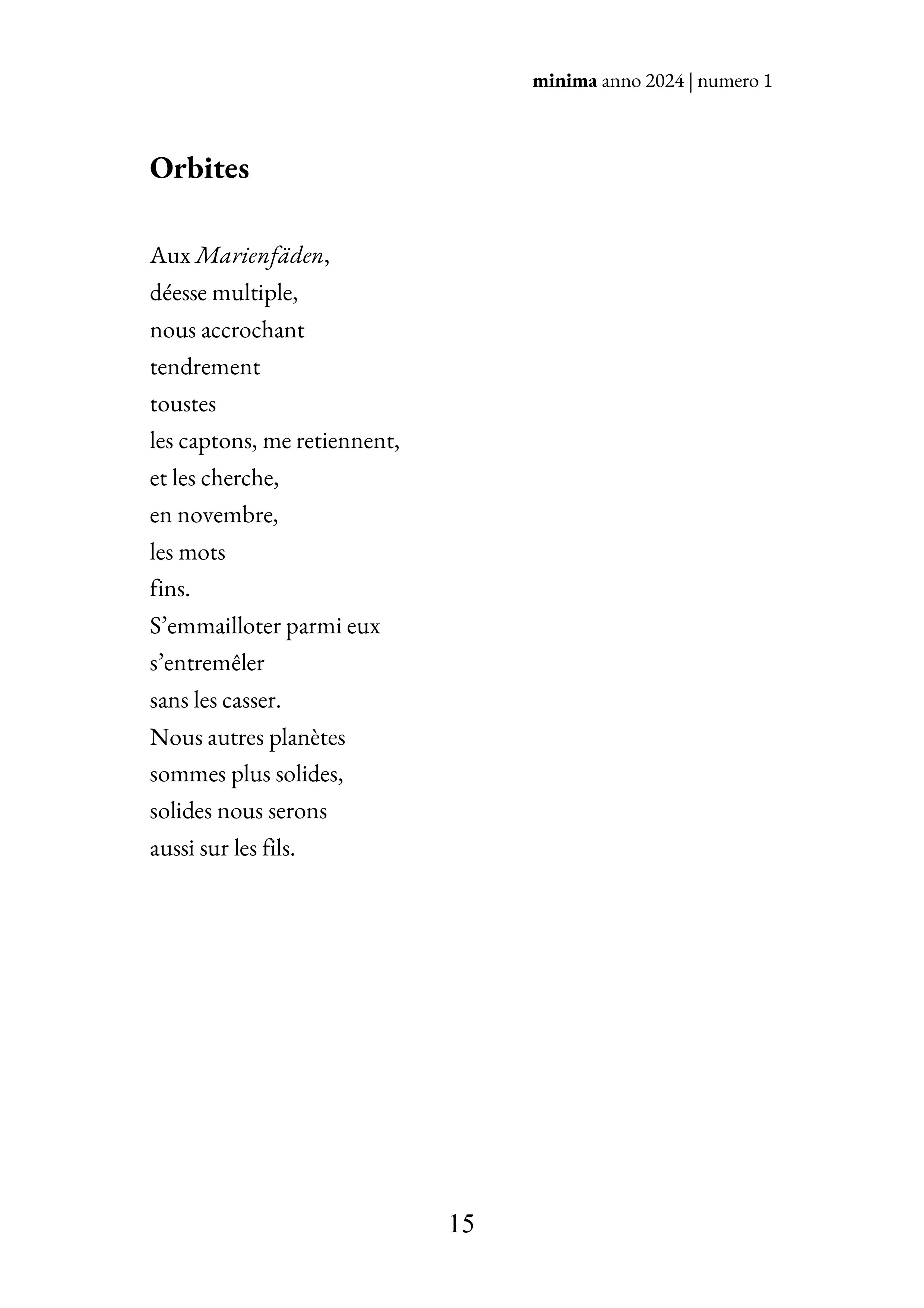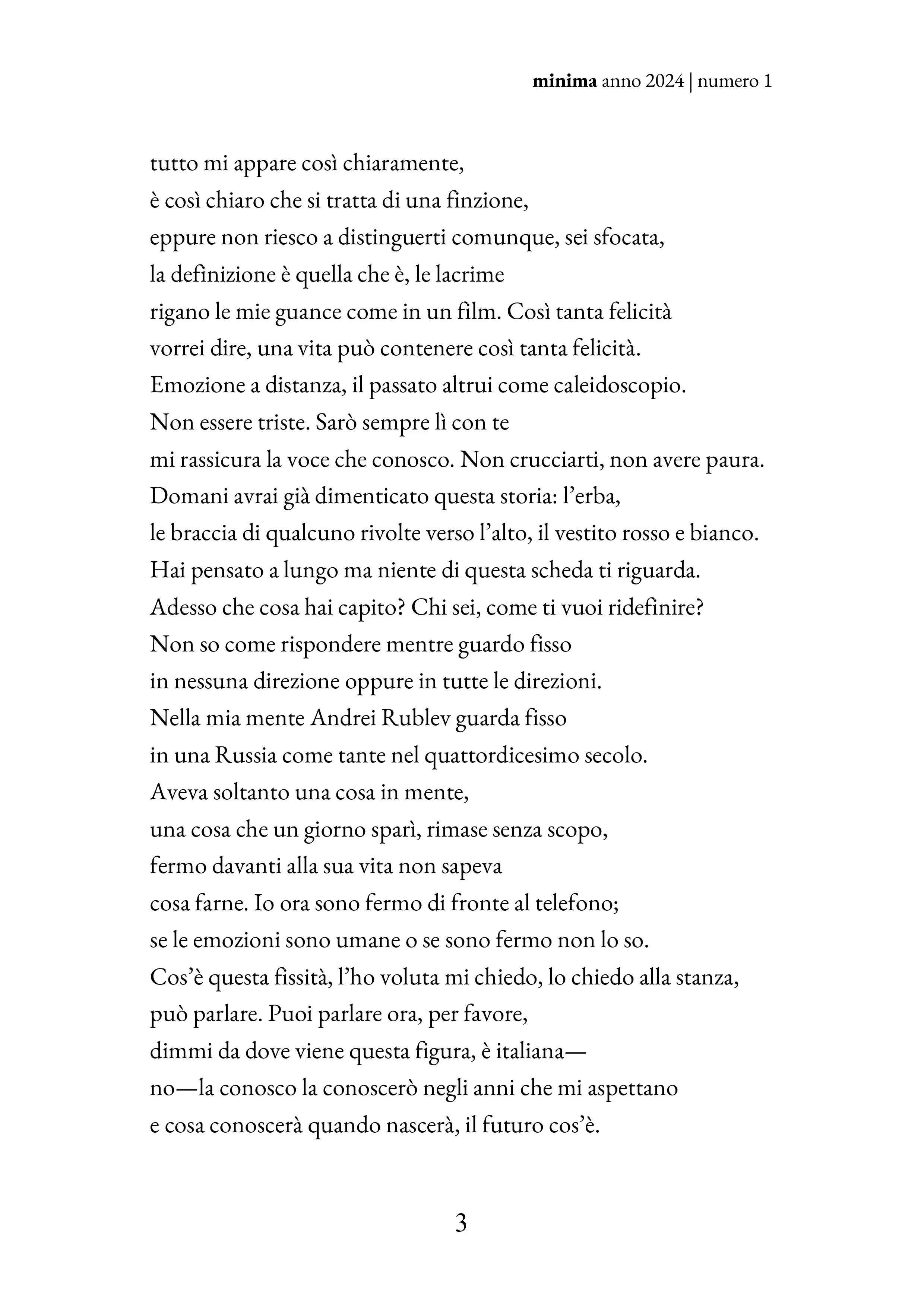 Domenico Cisternino, Alessandro Farris, Alice Fusai, Solmeng-Jonas Hirschi, Kierán Meinhardt, Elena Micheletti, Sharon Olds, Michele Trizio.